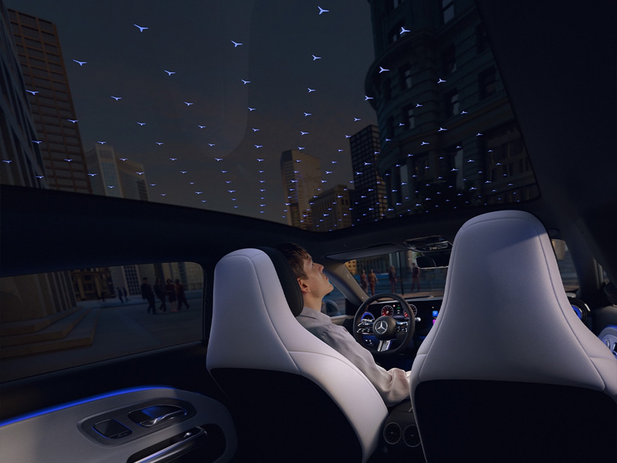 I den förarorienterade och rymliga kupén styr du kontroller, appar och viktiga funktioner genom den interaktiva skärmen MBUX Superscreen. Upplev en lika genomtänkt som bekväm interiör miljö.