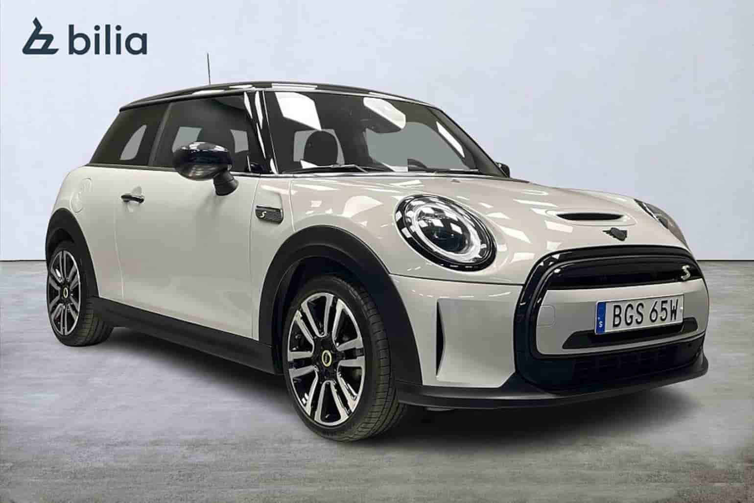Service avtal till 2027-12-29, MINI lättmetall fälgar Rail Spoke 2-färgad, Multifunktion för ratten, Sport ratt läder, Däck reparations set, Ytterspeglar nedfällbara, Tak och spegel kåpor svarta, Piano Black exterieur, Tonade rutor, Velour mattor, Isofix-System, Armstöd fram, Sportstolar, Förvaringspaket, Takhimmel antracit, Inneryta Piano Black, Värmepump, Ac-laddning Professional, Snabbladdning likström, Akustiskt fotgängarskydd, Omgivningsbelysning i kupe, Mini Driving Modes, PDC bak, Regnsensor, Klimatautomatik, Farthållare, Bordcomputer, Ljuspaket, LED-strålkastarare, Driving Assistant, DAB-tuner, Teleservice, eCall system, eDrive tjänster, Connected Drive Service, Real-Time Traffic Information, Mini Connected,Mini navigationssystem, Multifunktionell instrumentdisplay, Bilen är uttagen 2022-12-30, Bilen går att företagsleasa,