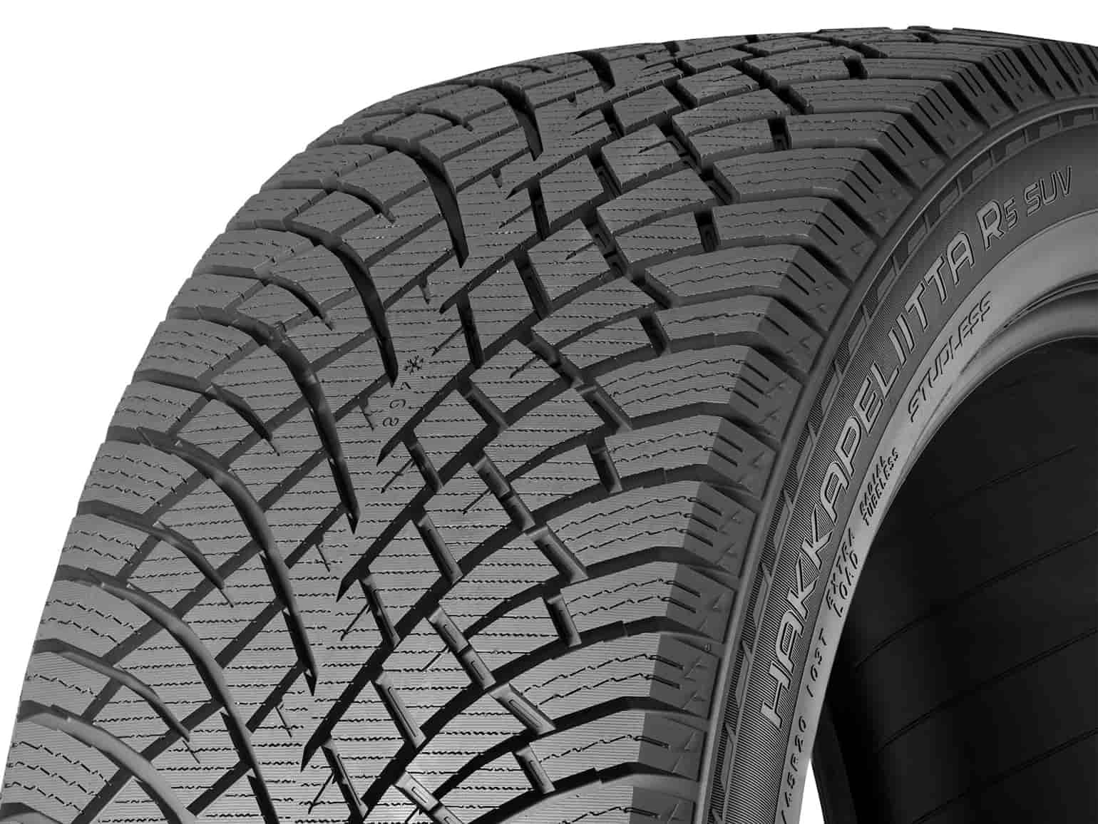 Nordiskt Friktionsdäck Nya Hakkapeliitta R5 SUV är ett dubbfritt vinterdäck för personbilar, crossovers och SUV:ar. Hakkapeliitta R5 SUV är skräddarsytt för att tillgodose behoven hos tunga och stora fordon, och det erbjuder optimerad stabilitet, hållbarhet och slitagetålighet samtidigt som det hanterar höga belastningar precist och tillförlitligt. Klassens bästa isprestanda garanteras av unika Arctic Grip Crystals, och de aramidförstärkta däcksidorna erbjuder bättre slitstyrka och skydd mot punktering.